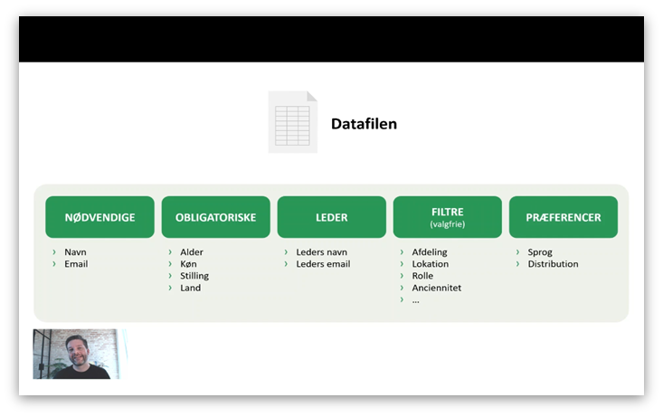 For at oprette din organisation skal du uploade en datafil med informationer om medarbejderne.