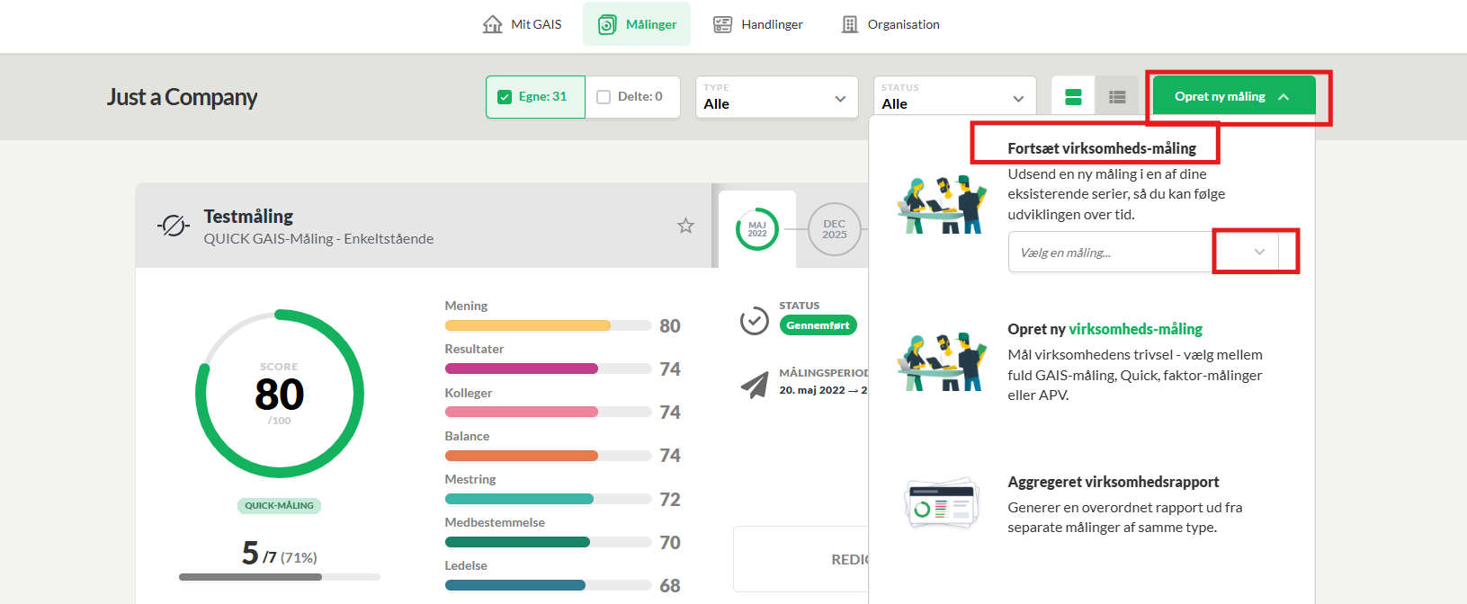 Endeligt kan du også redigere i målingens indstillinger, inden den udsendes, hvis du ønsker andre settings end dem, du valgte ved seneste måling.