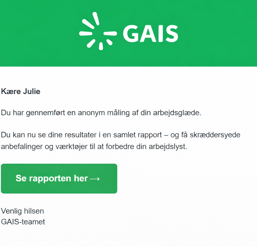 Når du har udfyldt en GAIS-måling, får du straks adgang til din personlige rapport.
