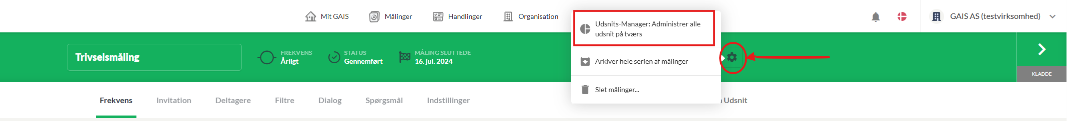 Når du kommer ind på målingen, finder du tandhjulet i øverste højre hjørne og vælge "Udsnits-Manager: Administrer alle udsnit på tværs":