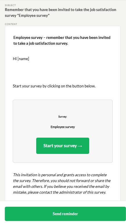 Participants who have not answered the survey receive an automatic reminder 3 days before the survey expires.