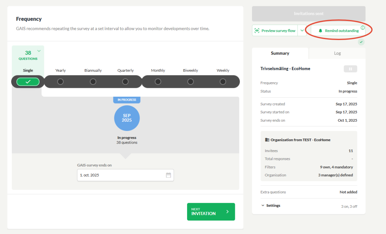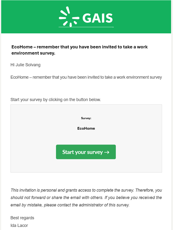 The GAIS platform automatically sends a reminder email three days before a survey expires to those who have not yet answered. You also have the option to send additional reminders yourself. At the bottom of the article, you will see automatic reminders to administrators.