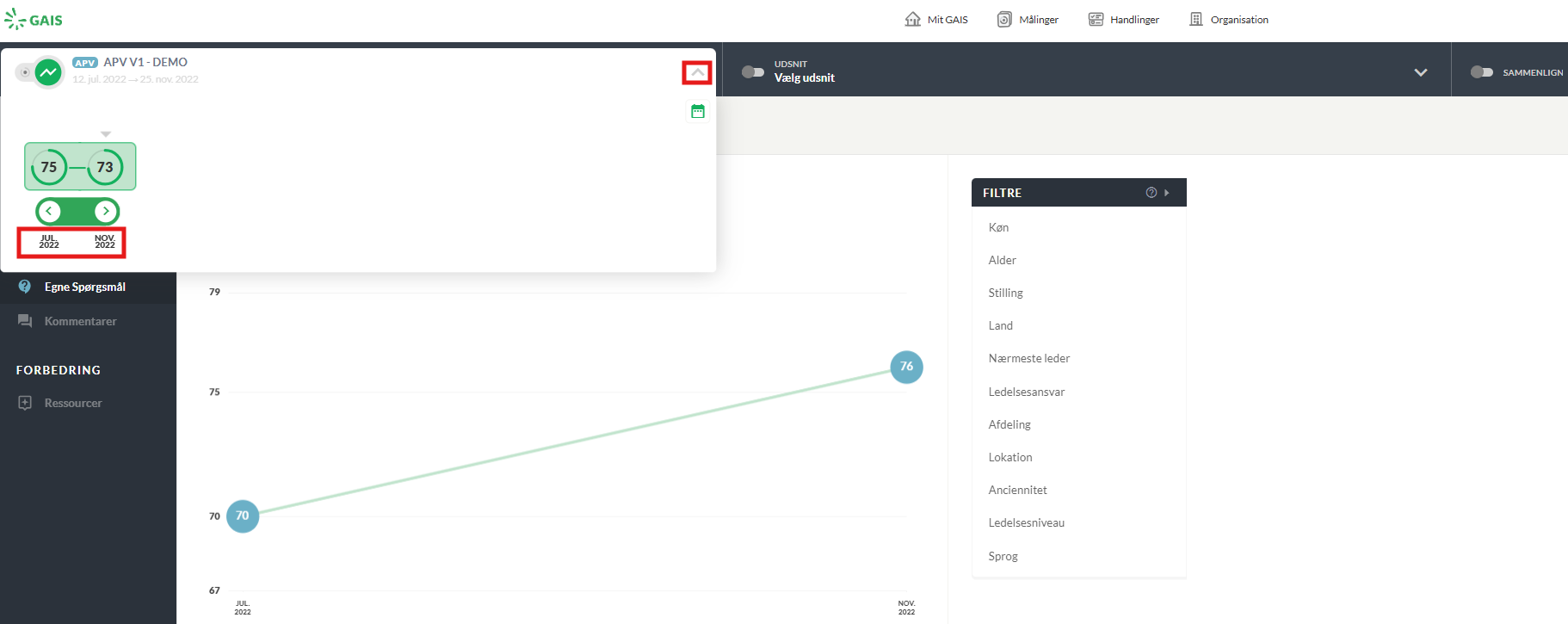 Hvis du har lavet en tidligere APV-måling i samme serie med de samme egne spørgsmål, kan du se udviklingen i besvarelserne.
